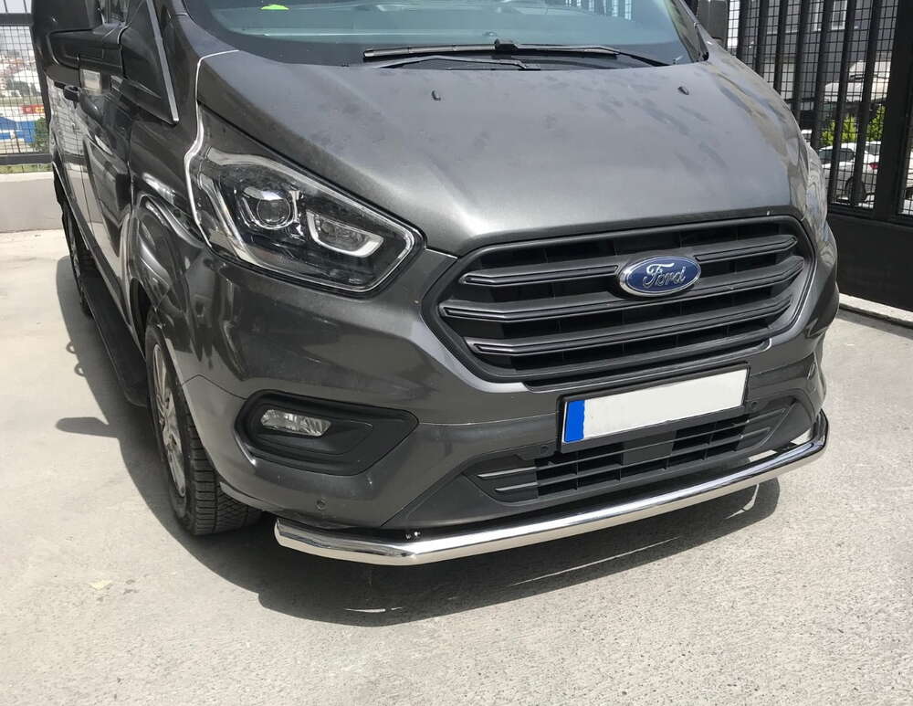 Ford Transit Custom Etupuskurin suojarauta, sopii 2018-2023 vuosimallin autoihin. Sopii myös malleihin joissa parkkitutkat edessä. Valmistettu 60mm ruostumattomasta teräsputkesta. Paketti sisältää suojaraudan, kiinnitystarvikkeet sekä ohjeet. Ei sovi uusi koriseen 2024- ja uudempiin autoihin.