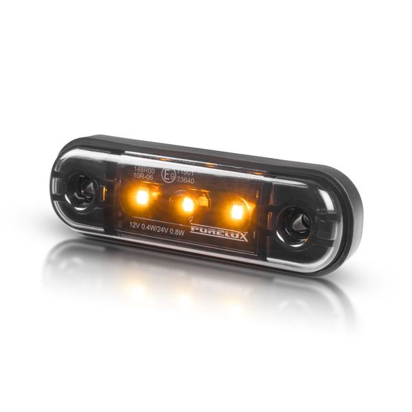 Purelux Position Light 3LED on matala ja tyylikäs äärivalo / huomiovalo, jonka avulla ajoneuvon näkyvyyttä saadaan lisättyä niin liikenteessä kuin parkissakin. Valaisin on varustettu kolmella oranssilla ledillä sekä kevyesti tummennetulla linssillä, joka päästää katseet kääntävän oranssin hehkun lävitseen aina valojen ollessa päällä, mutta piilottaa valaisimen rungon huomaamattomaksi osaksi ajoneuvoa valojen ollessa sammuksissa. Valaisin on ECE R148-standardin mukaisesti tieliikennekäyttöön hyväksytty, ja kompaktin rakenteen ansiosta se on helppo asentaa niin osaksi raskaan kaluston ja työkoneidein kuin pakettiautojen, maastureiden ja tavallisten henkilöautojenkin valaistusratkaisuja. Lisäksi valaisimen alhainen virrankulutus mahdollistaa useiden valaisimien asentamisen samaan ajoneuvoon kuormittamatta järjestelmää. Valon mukana toimitetaan kumiset sovitteet sekä suoraan että kaarevaan pintaan, mikä lisää asennusmahdollisuuksia entisestään.