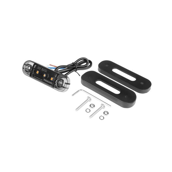 Tyylikäs, siro ja matala huomio-/äärivalo, joka on varustettu oransseilla ledeillä, kevyesti tummennetulla linssillä ja R148-hyväksynnällä. Soveltuu niin raskaan kaluston ja työkoneiden kuin pienempienkin ajoneuvojen uloimpien kohtien merkitsemiseen. Käyttöjännite 10-30V, IP67-luokitus.
