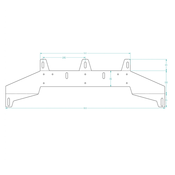 Asennusreikien välinen etäisyys on 240 mm ylemmällä rivillä ja alemmalla 868 mm. Telineen kokonaisleveys on 900 mm.