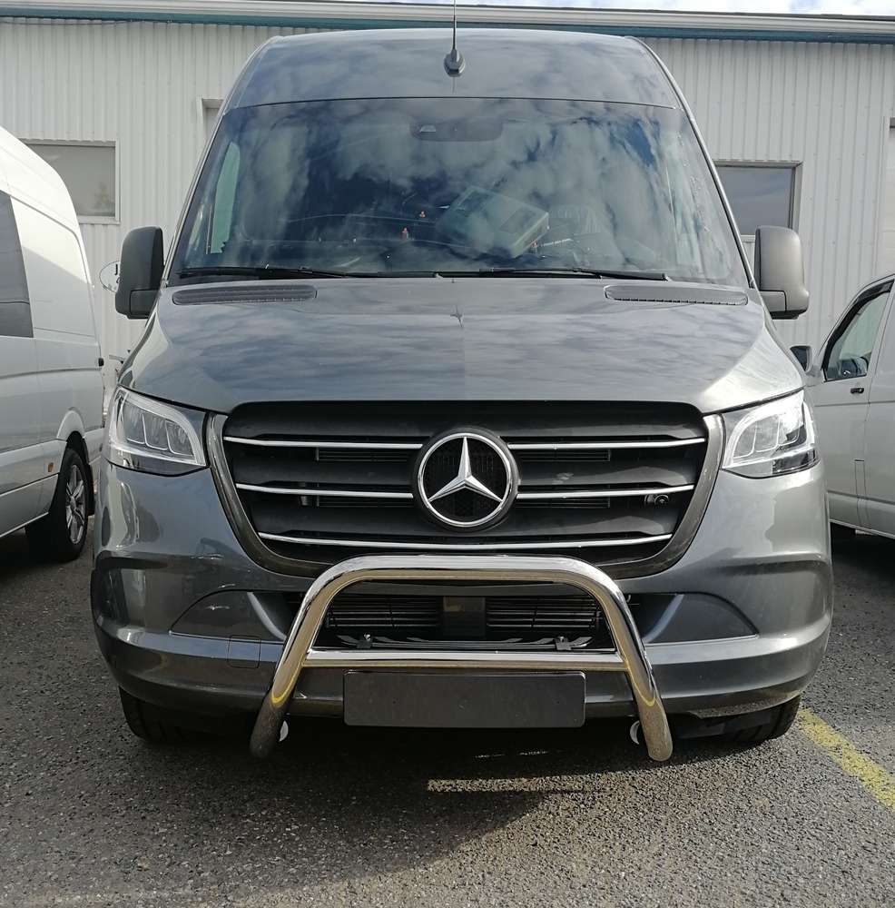 M-B Sprinter W907 Valorauta (A-malli), sopii 6/2018- uudempiin autoihin. Huom, tätä rautaa ei voi asentaa autoihin joissa on adabtiivinen vakionopeuden säädin, häiritsee sitä. Ei sovi myöskään etuvetomalleihin. Valmistettu 60mm ruostumattomasta teräsputkesta, joka on kiillotettu peilikirkkaaksi. Pakettiin kuuluu valorauta, mallikohtaiset kiinnitysraudat ja ruuvit sekä 2 kpl 60mm putkelle tarkoitettuja lisävalojen kiinnityspantoja. Huom! Tällä raudalla ei ole EU-hyväksyntää! Kaikissa valotelineissä, jotka asennetaan 25/5/2007 jälkeen rekisteröityihin henkilö- tai alle 3500 kg pakettiautoihin tulee olla EU-hyväksyttyä mallia! Mikäli ajoneuvo on rekisteröity kuorma-autoksi, voi siihen asentaa minkä tahansa valotelineen, eli tämän.