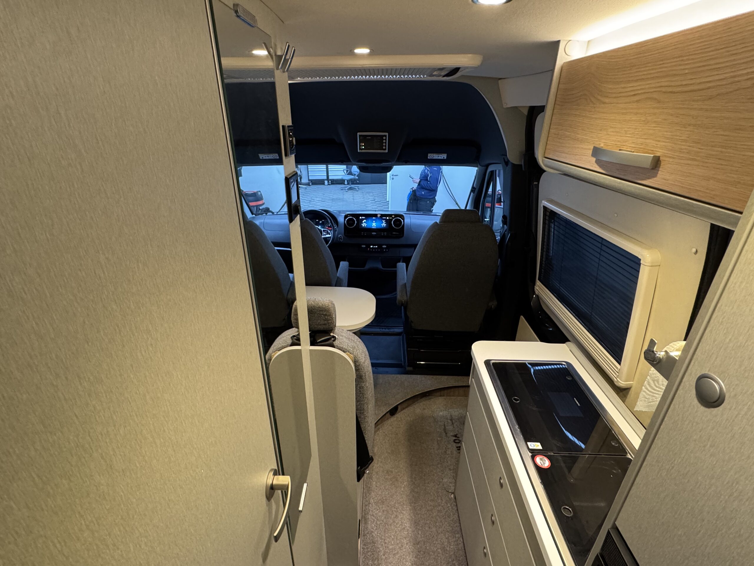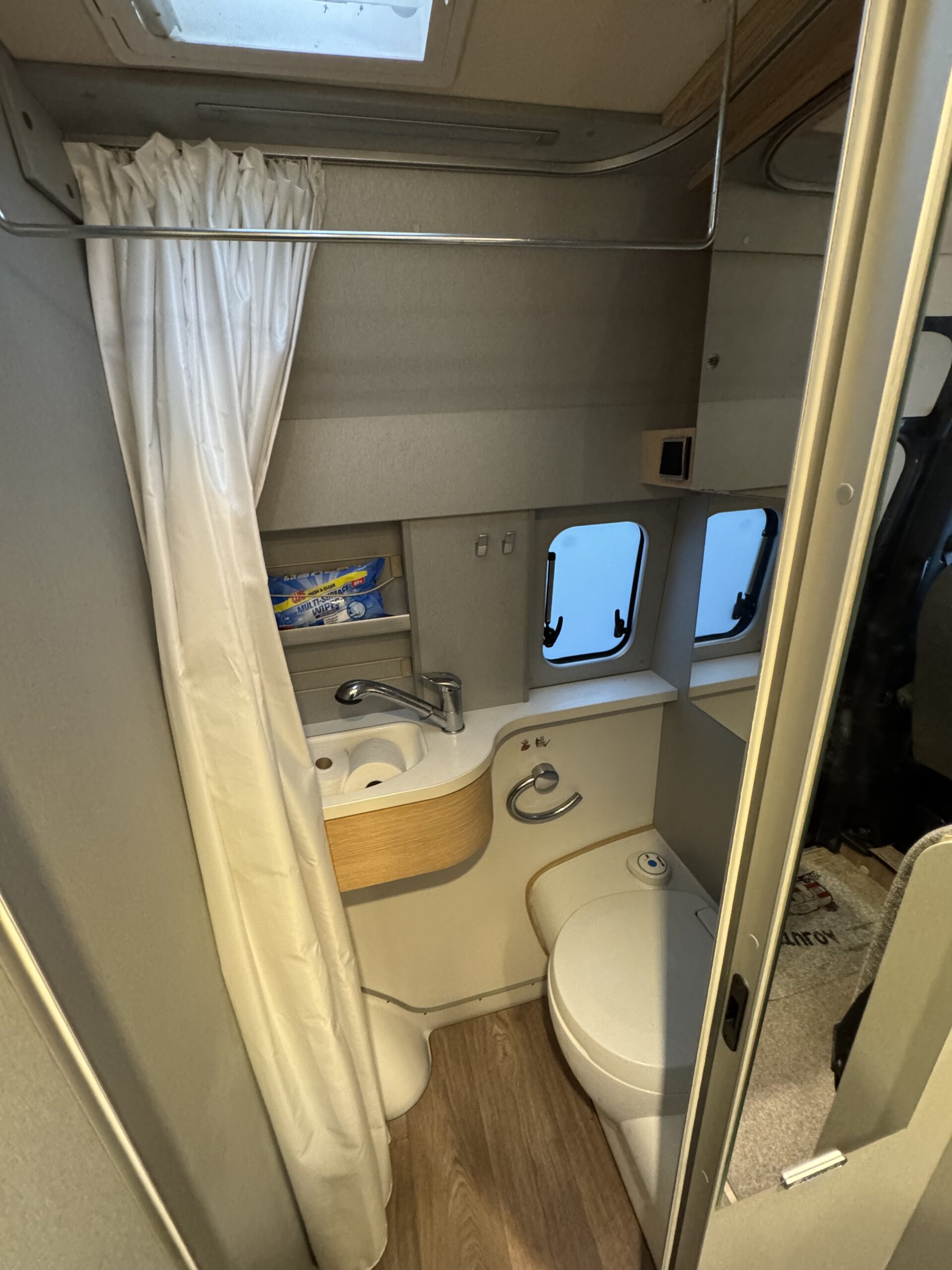 Kasetti-WC, suihku ja pesuallas tekevät hygieniasta vaivatonta missä tahansa liikutkin. Truma-ilmakeskuslämmitys, lämminvesivaraaja ja sähköpatruuna varmistavat, että lämpötila pysyy miellyttävänä myös viileämmillä säillä.